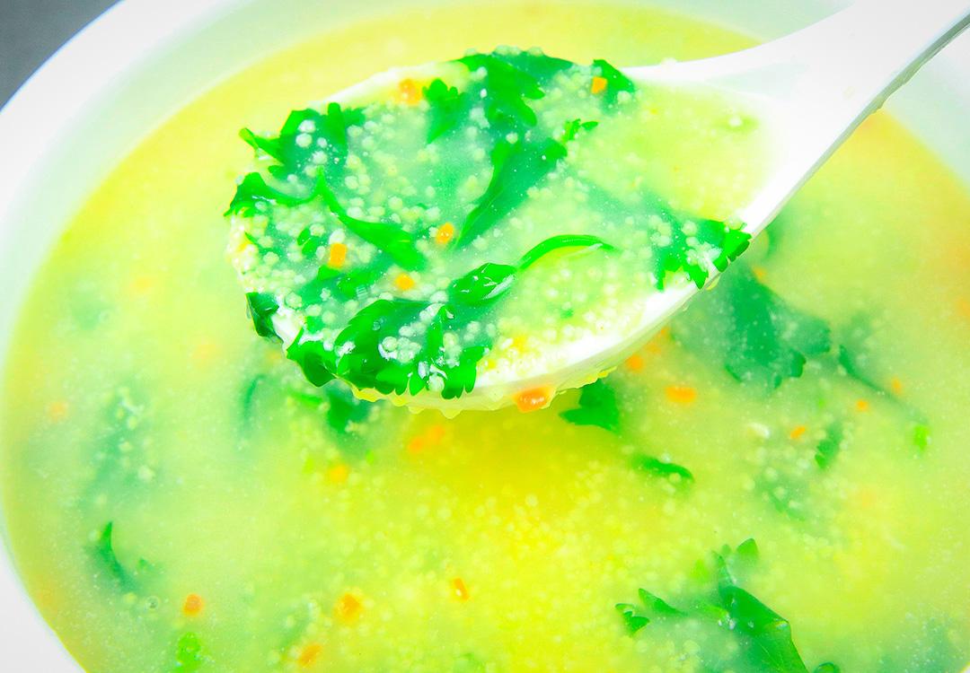 5.最后出锅前放入芹菜叶,搅几下就可以了,熬好的小米粥上面飘着一层厚厚的米油,小米颗粒分明、丝毫不沾不坨,非常的清香可口,美味即成。